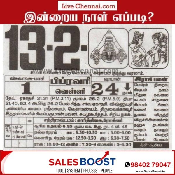 February 13,2026 – Friday | Masi 01 | Visuvavasu Year Auspicious Timings Morning 09:00 AM – 10:30 AM Evening 05:00 PM – 06:00 PM Inauspicious…