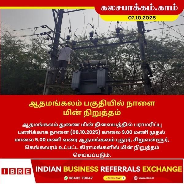 ஆதமங்கலம் துணை மின் நிலையத்தில் (08.10.2025) நாளை மின் நிறுத்தம்!