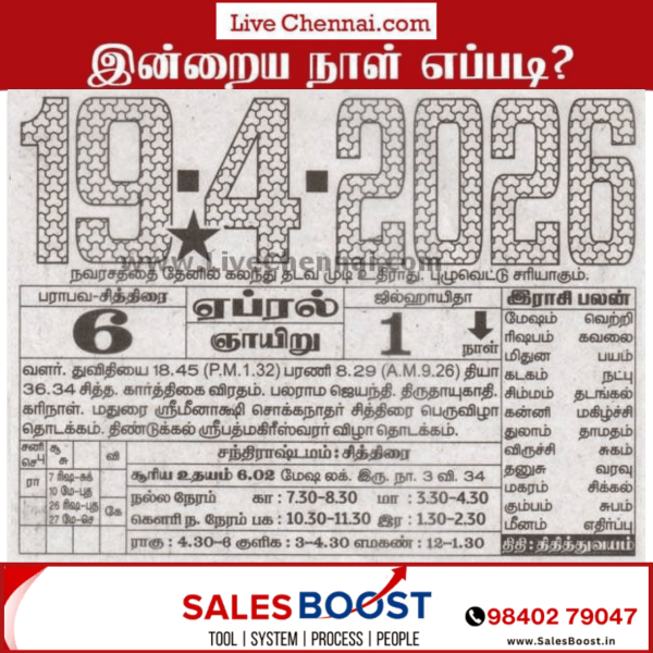 | April 19, 2026 – Sunday | Chithirai 6 | Parabhava Year | |||