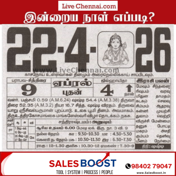 | April 22, 2026 – Wednesday | Chithirai 9 | Parabhava Year | |||