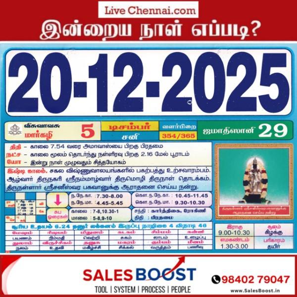 | December 20, 2025 – Saturday | Margazhi 05 | Visuvavasu Year | |||