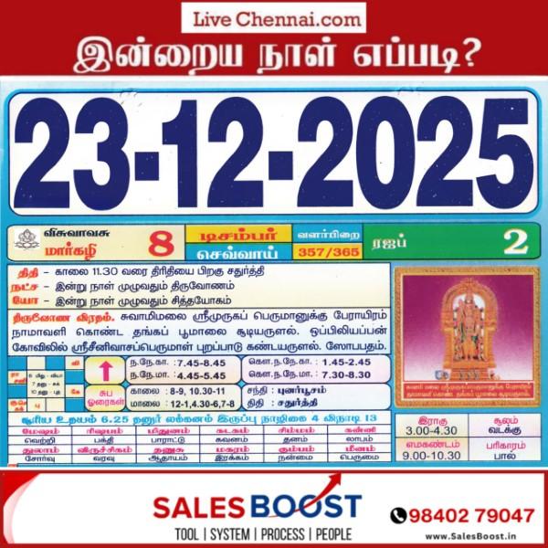 | December 23, 2025 – Tuesday | Margazhi 08 | Visuvavasu Year | |||