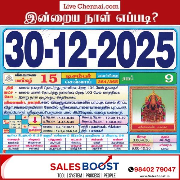 | December 30, 2025 – Tuesday | Margazhi 15 | Visuvavasu Year | |||