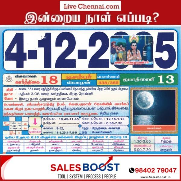| December 04, 2025 – Thursday | Karthigai 18 | Visuvavasu Year | |||