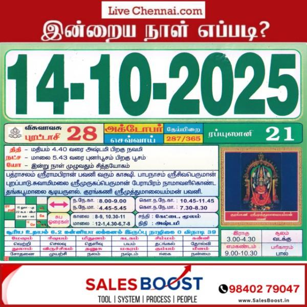 October 14, 2025 – Tuesday | Purattaasi 28 | Visuvavasu Year | |||