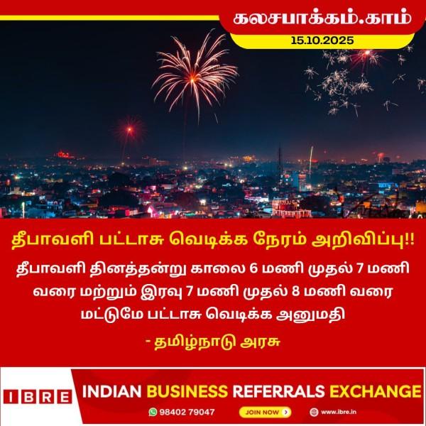தீபாவளி பட்டாசு வெடிக்க நேரம் அறிவிப்பு!!