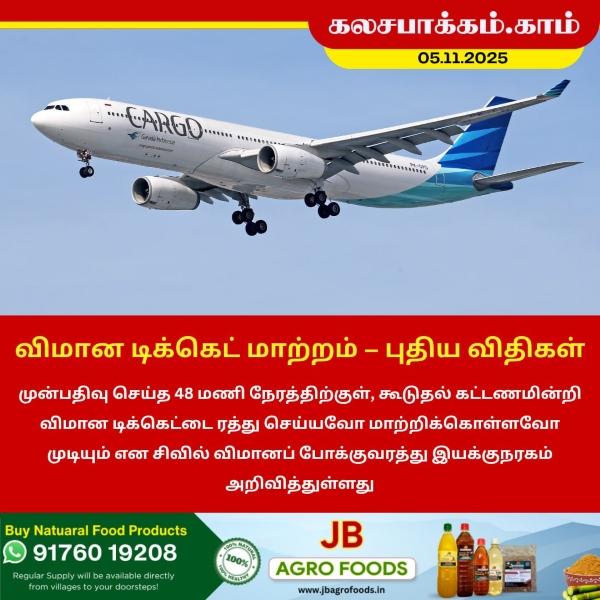 முன்பதிவு செய்த 48 மணி நேரத்திற்குள், கூடுதல் கட்டணமின்றி விமான டிக்கெட்டை ரத்து செய்யவோ மாற்றிக்கொள்ளவோ முடியும் என சிவில் விமானப் போக்குவரத்து இயக்குநரகம் அறிவித்துள்ளது.