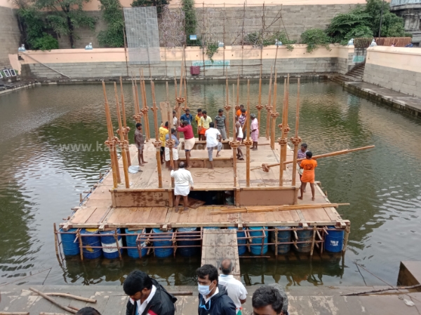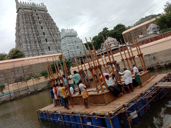 திருவண்ணாமலை அருள்மிகு அண்ணாமலையார் கோயில் தீபத்திருவிழா இன்று (20.11.2021) மாலை முதல் மூன்று நாட்கள் நடைபெற உள்ள தெப்பல்‌ விழாவிற்கான தெப்பல் அமைக்கும் பணி திருக்கோயில் நான்காம் பிரகாரத்தில் உள்ள பிரம்ம தீர்த்தத்தில் நடைபெற்று வருகிறது.
