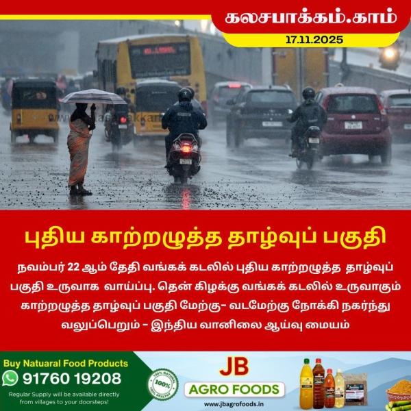 நவம்பர் 22 ஆம் தேதி வங்கக் கடலில் புதிய காற்றழுத்த தாழ்வுப் பகுதி உருவாக வாய்ப்பு. தென் கிழக்கு வங்கக் கடலில் உருவாகும் காற்றழுத்த தாழ்வுப் பகுதி மேற்கு- வடமேற்கு நோக்கி நகர்ந்து வலுப்பெறும் என இந்திய…
