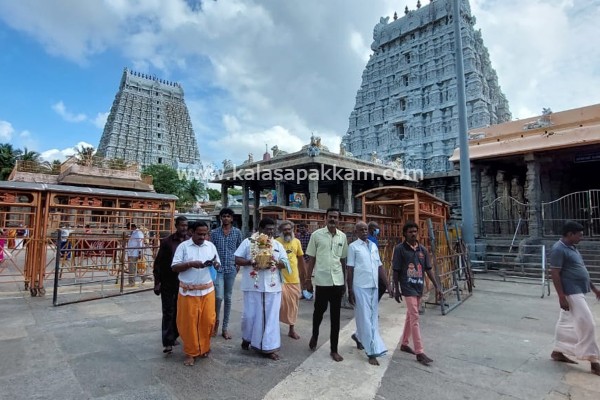 திருவண்ணாமலை அருள்மிகு அருணாசலேசுவரர் திருக்கோயில் தீபத்திருவிழா 24.11.2021 முடிவடைந்த நிலையில் மலை மீது தெளிக்க பிராயசித்த புனித நீர் சிறப்பு பூஜைக்கு பின் மலை மீது கொண்டு செல்லப்பட்டு, அங்கு உள்ள அண்ணாமலையார் பாதத்திற்கு புனிதநீரால் அபிஷேகம் செய்யப்பட்டது.