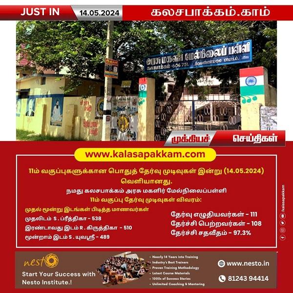 நமது கலசபாக்கம் அரசு மகளிர் மேல்நிலைப்பள்ளி 11ம் வகுப்பு தேர்வு முடிவுகள் விவரம்: