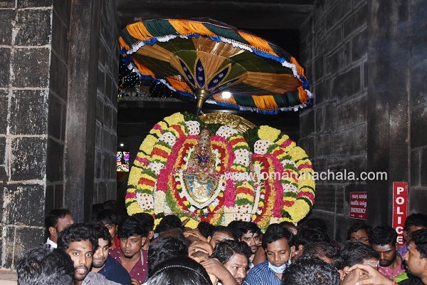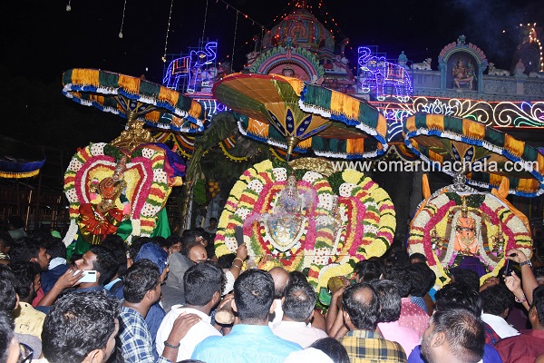 திருவண்ணாமலை அருணாச்சலேஸ்வரர் கோவிலில் கார்த்திகை தீபத் திருவிழாவையொட்டி முதல் நாள் நேற்று இரவு (10-11-2021) அண்ணாமலையார் சமேத அருணாசலேஸ்வரர் உள்ளிட்ட பஞ்ச மூர்த்திகளும் மங்கள வாத்தியம் முழங்க சிறப்பு அலங்காரத்தில் உலா நடைபெற்றது.