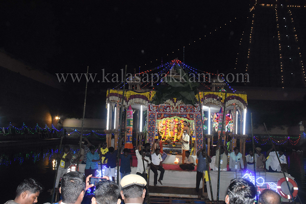 திருக்கார்த்திகை தீபம் திருவிழாவில் பிரம்ம தீர்த்த (20.11.2021) குளத்தில் சுவாமி அம்பாள் முதல் நாள் தெப்பல் உற்சவம் நடைபெற்றது.