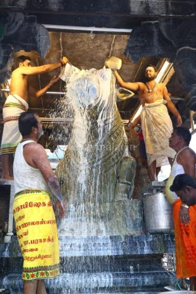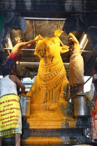 திருவண்ணாமலையில் அருணாச்சலேஸ்வரர் திருக்கோவிலில் நேற்று (17-11-2025)  புரட்டாசி மாத அமாவாசை பிரதோஷத்தை முன்னிட்டு நந்தி பகவானுக்கு சிறப்பு அபிஷேக ஆராதனை நடைபெற்றது. இதில் திரளான பக்தர்கள் கலந்து கொண்டு அரோகரா கோஷத்துடன் தரிசனம் செய்தார்கள்.
