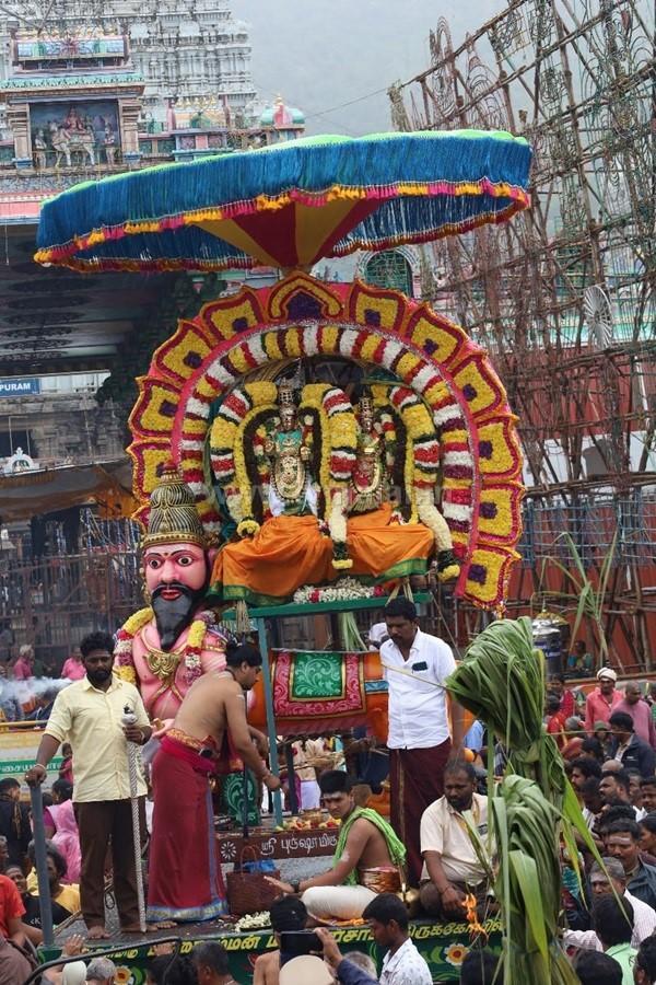 திருவண்ணாமலை அண்ணாமலையார் திருக்கோயிலில் திருக்கார்த்திகை தீபத் திருவிழாவின் ஒன்பதாம் நாள் காலை விநாயகர், சந்திரசேகரர் புருஷா முனி வாகனத்தில் வீதியுலா வர இருக்கின்றனர். இரவு பஞ்சமூர்த்திகள் குதிரை வாகனத்தில் வீதி உலா நடைபெறும்.