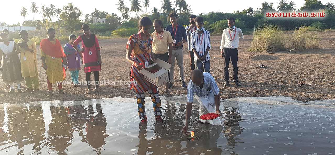 கலசபாக்கம் ஆற்றில் (செய்யாற்றில்) வரும் புது வெள்ளத்தை மலர்தூவி வணங்கி வரவேற்றபோது...