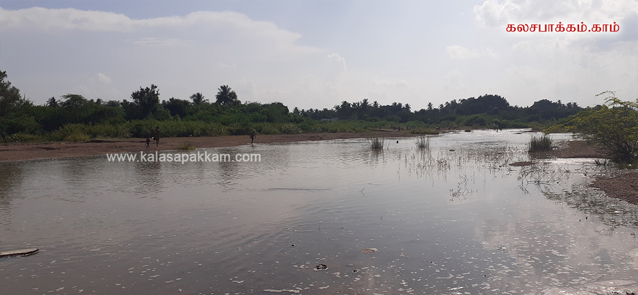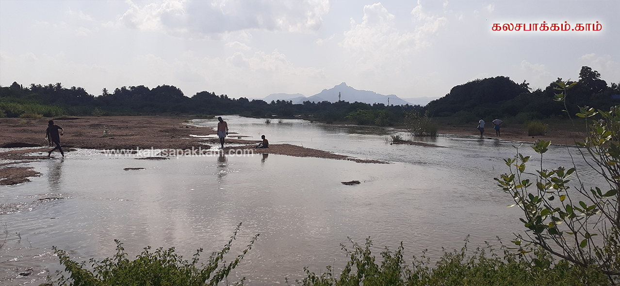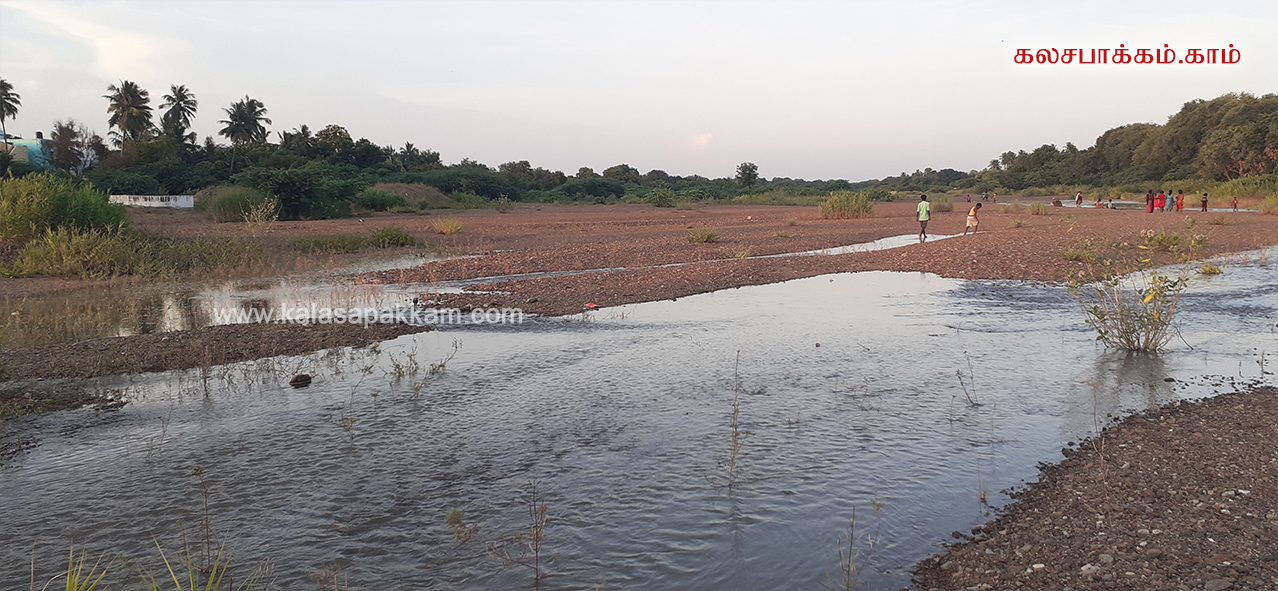 கலசபாக்கம் ஆற்றில் ( செய்யாற்றில் ) வெள்ளம் மலர்தூவி வரவேற்பு