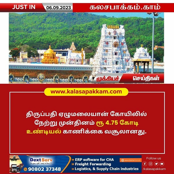திருப்பதி ஏழுமலையான் கோவிலில் உண்டியல் காணிக்கை ரூ 4.75 கோடி வசூல்!